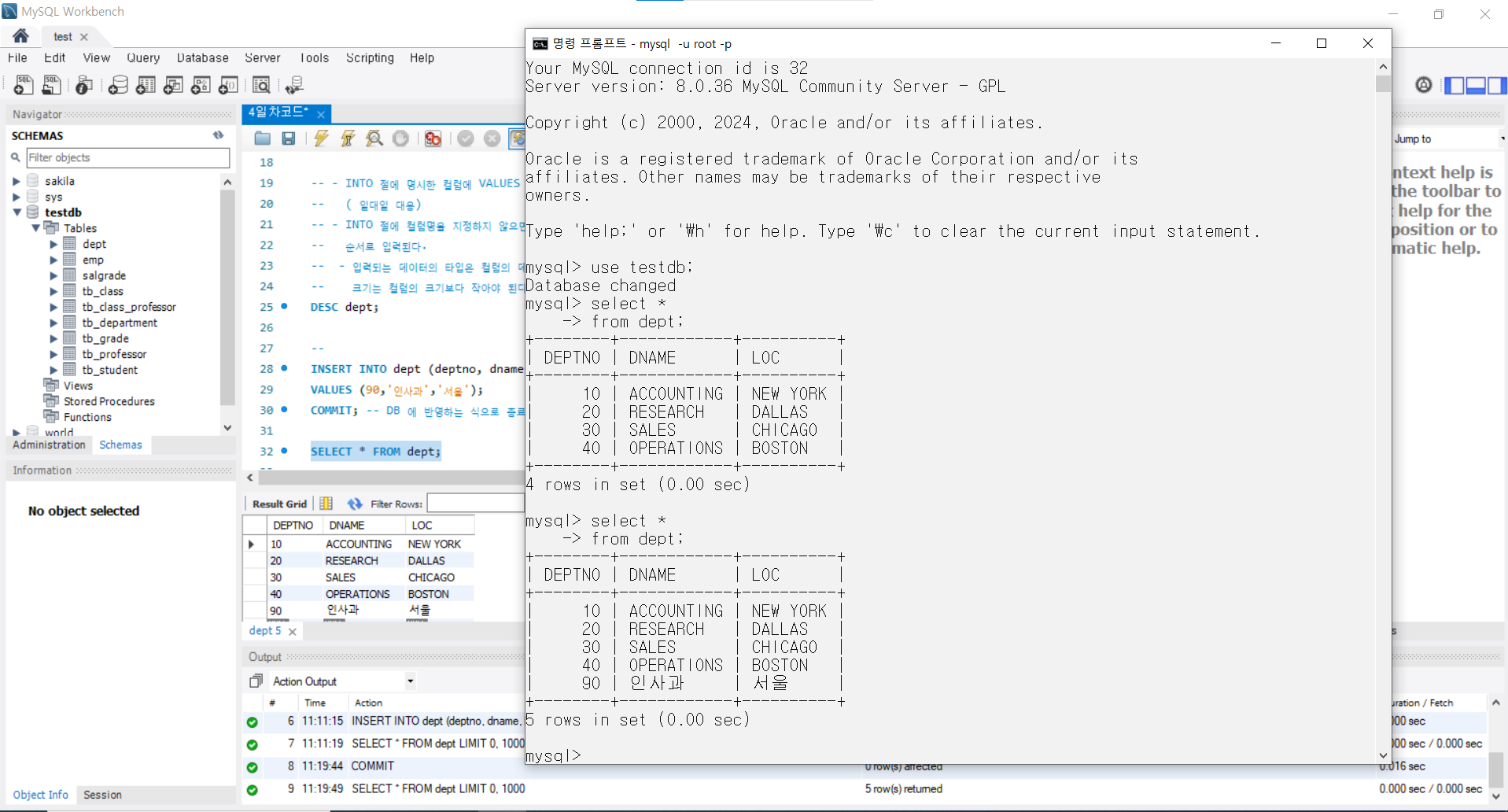 # 실습전에 새로운 테이블 생성하자.