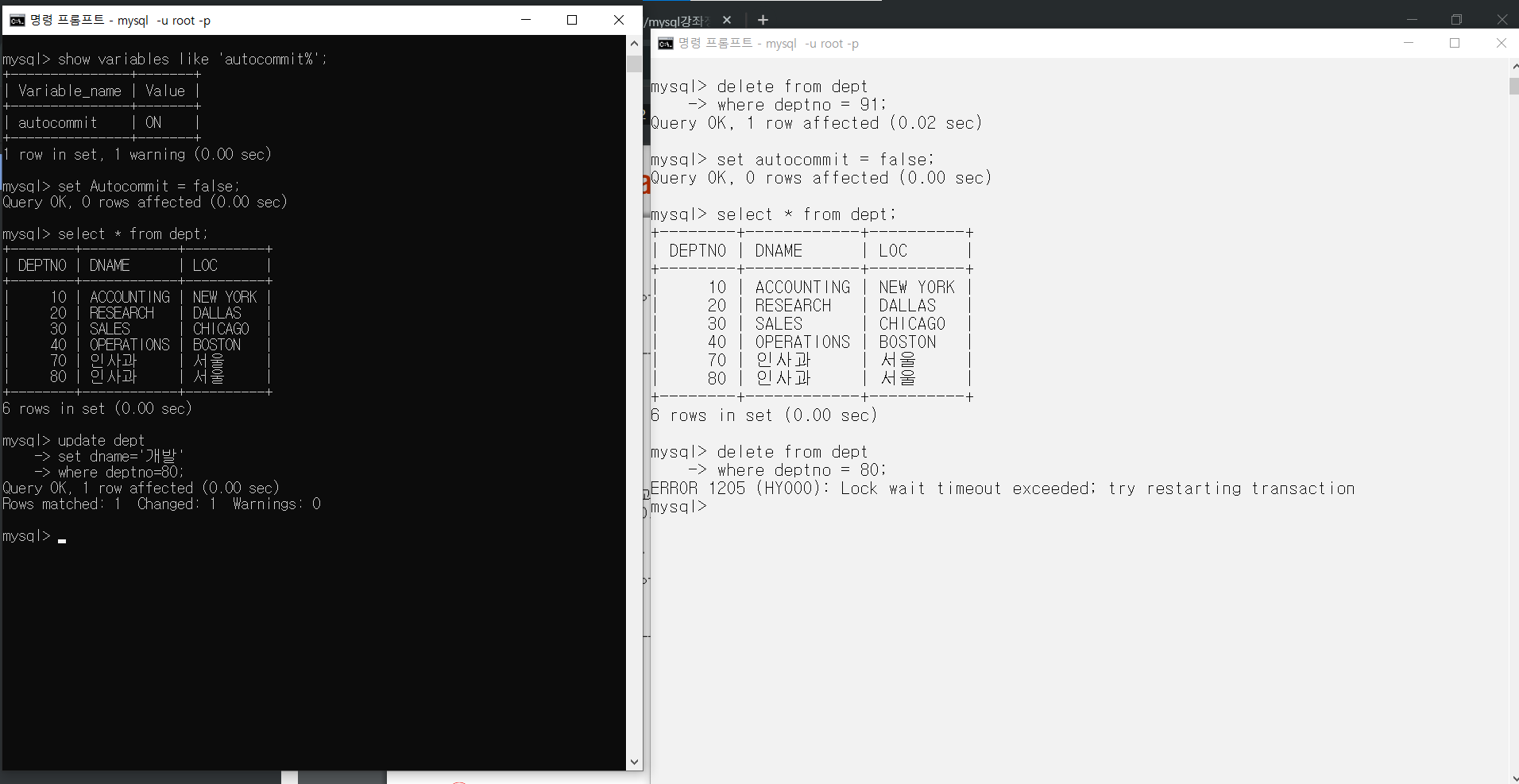 # 성공시 - commit 으로 실제 DB에 반영