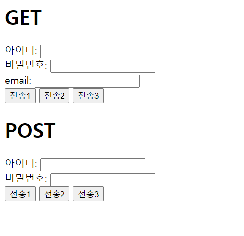 ==> 사용자가 입력한 데이터(폼데이터)가 서버로 전달되는 방법 2가지