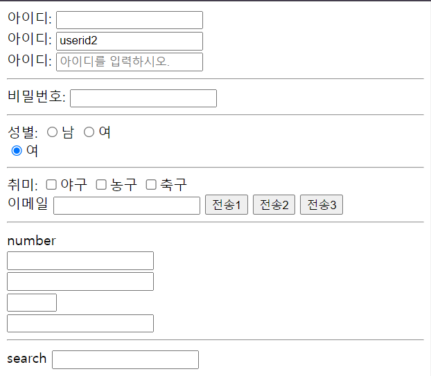 아이디: <input type="text" name="userid2" value="userid2"><br>
