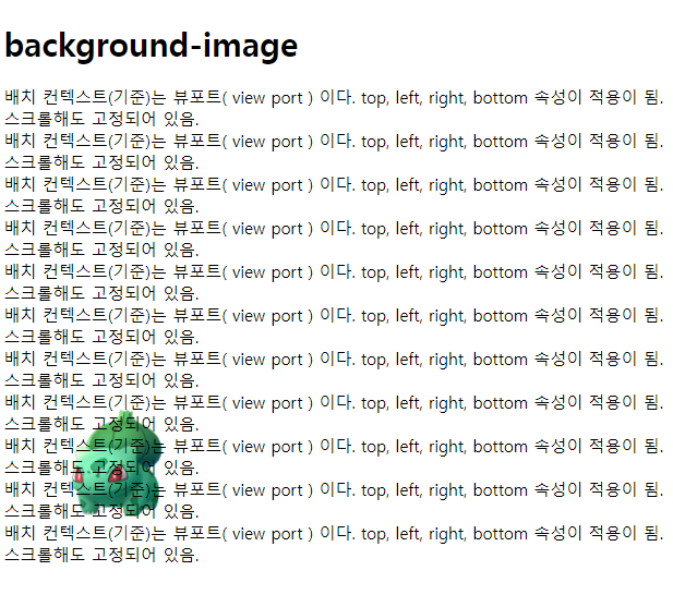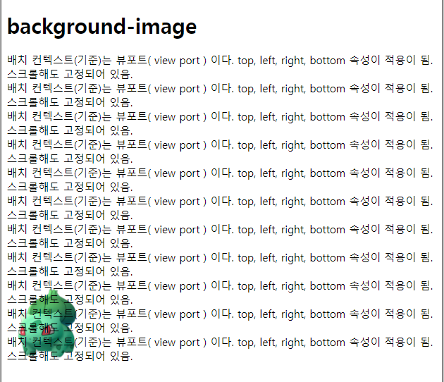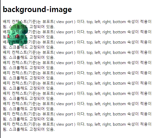 background 로 설정된것이 scroll 할때 고정될지 움직일지 설정