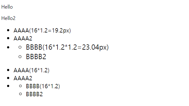 - 부모 요소의 em값을 상속해서 글꼴크기가 정해진다.