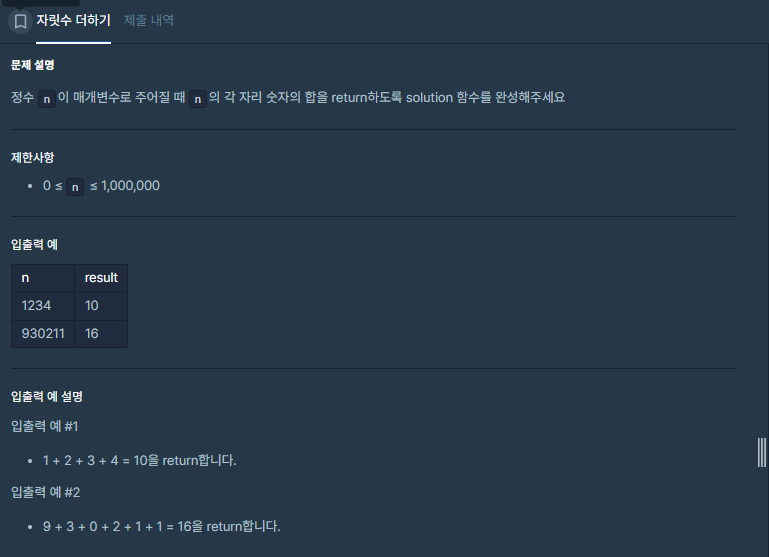 입출력 예를 보니까 정수를 string 으로 바꾸고 다시 정수로 바꾸면 각각 더하지 않을까??