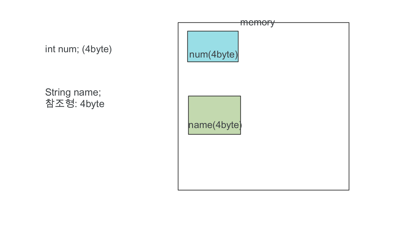 String name; // String 참조형이기 때문에 4byte 영역확보